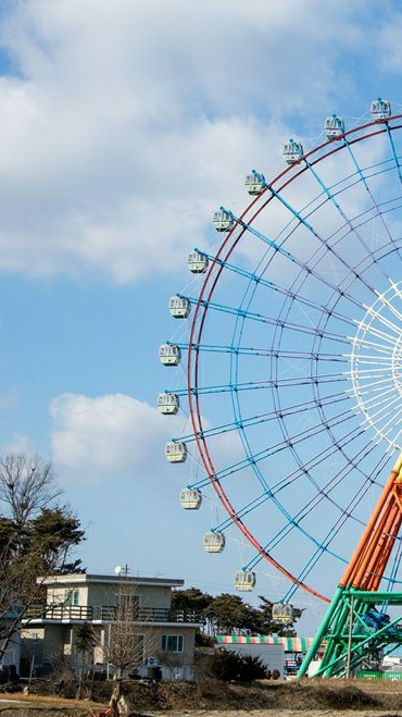 와, 관람차 좀 보세요. 커플이 타기에 정말 좋을 것 같아요. 가자, 내 여자친구😁.